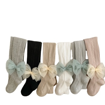 Hot Sales Bonito Meias Criança Menina Legging Calças Justas Com Laço Cor Sólida Lace Leggings Com Arcos Meia-calça para Crianças